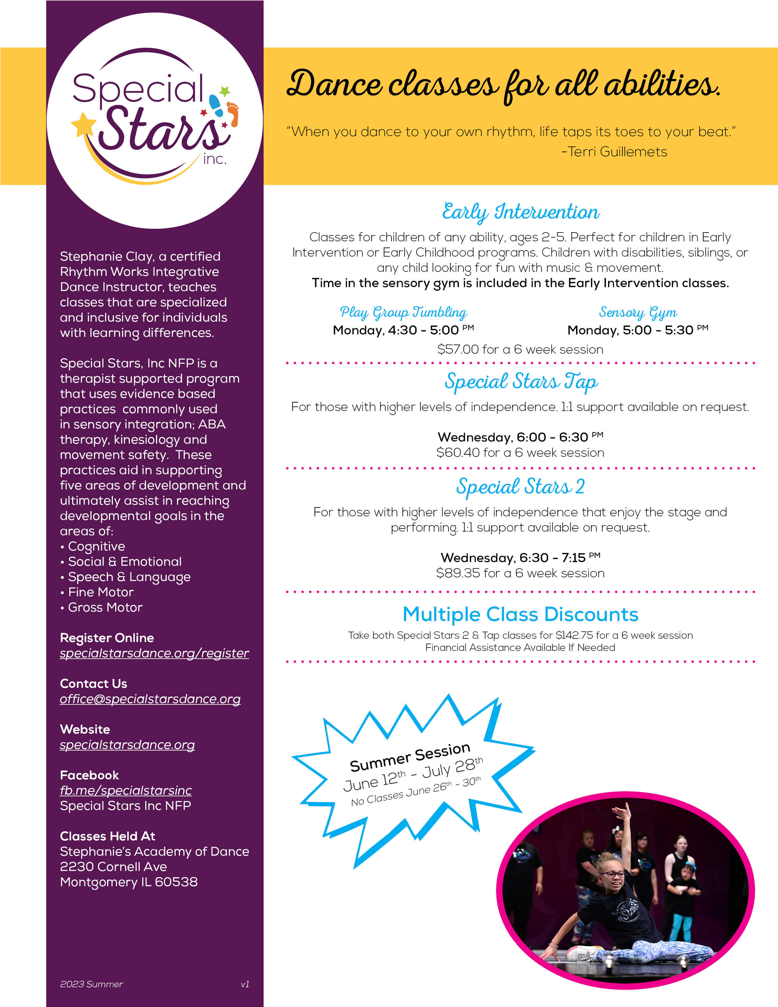 2023 Summer Information May 13 Written By Special Stars Inc NFP Download Flyer Register For Classes Special Stars Inc NFP